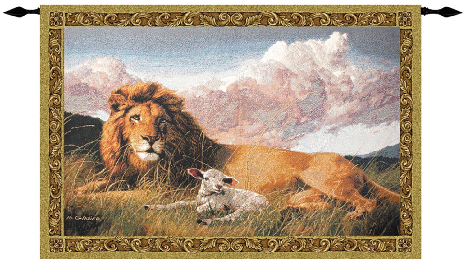 Lion Lamb Grande Tapestry Wall Hanging W Verse Nancy Glazier Fine Art Tapestries Lion And Lamb Tapestry Wall Hanging
